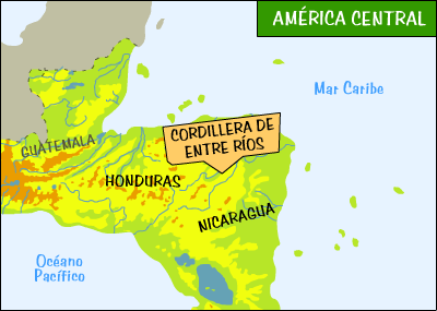 La cordillera Entre Ríos es uno de los principales conjuntos montañosos de América Central. Sus estribaciones siguen una dirección dominante SO-NE y se extienden entre los cauces de los ríos Coco y Patuca, y dan lugar a la frontera natural entre los países de Honduras y Nicaragua.