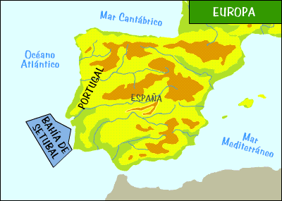 bahía de Setúbal se localiza entre los 38º25' de latitud N y los 9º12' de longitud O (
